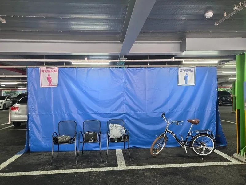 💡주차장 1층 안쪽에 탈의실이 있고요.