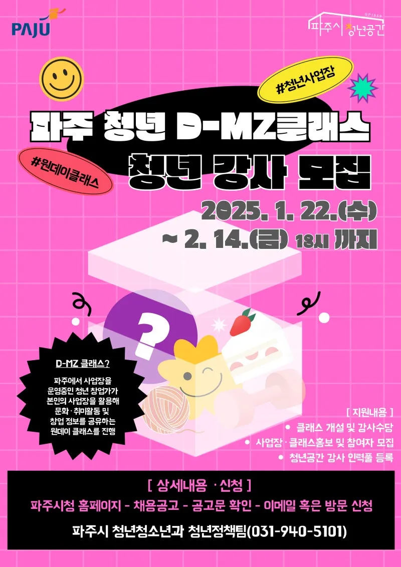 파주시 청년 D-MZ 클래스 운영을 위한 강사를 모집합니다!