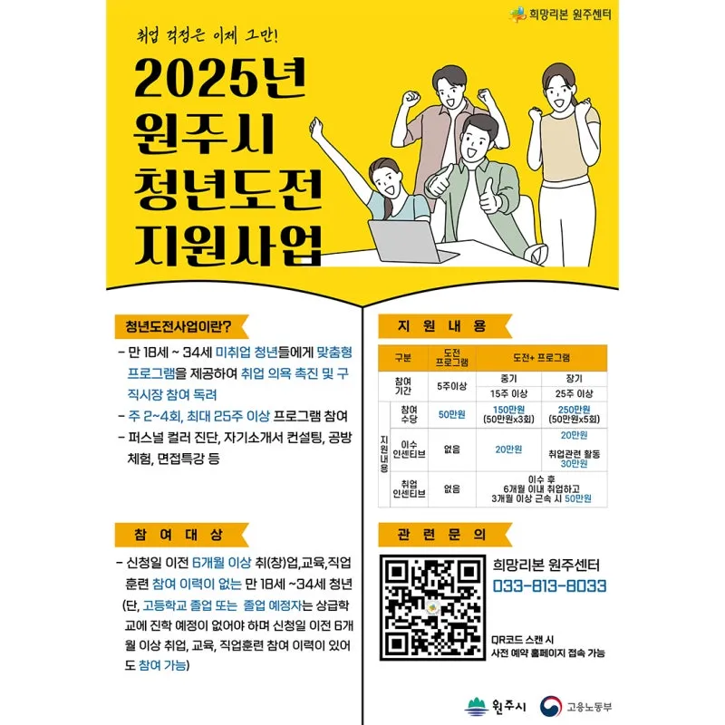 2025년 원주시 청년도전 지원사업으로 취업역량을 강화하세요!