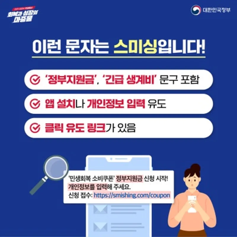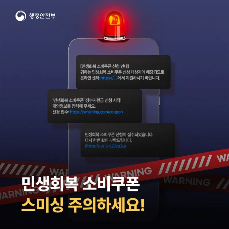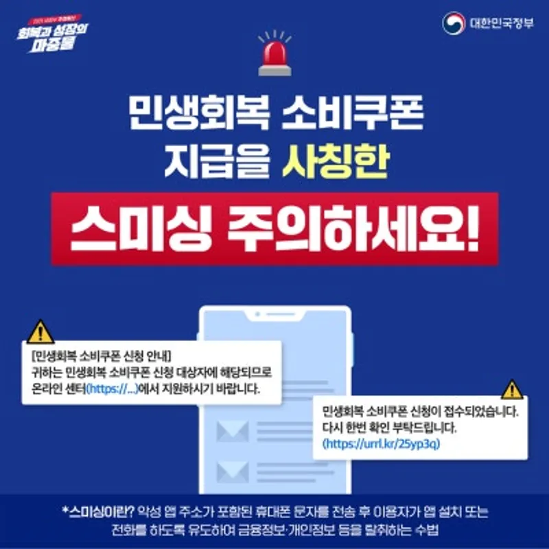 민생회복 소비쿠폰 스미싱 피해예방 안내