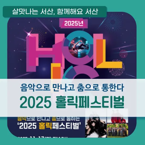 {"title":"[11. 17일]음악과 춤으로 하나 되는 ‘2025 홀릭페스티벌’ 개최","source":"https://blog.naver.com/seosan_city/224072246622","blogName":"해뜨는 서..","domainIdOrBlogId":"seosan_city","nicknameOrBlogId":"서산지기","logNo":224072246622,"smartEditorVersion":4,"meDisplay":true,"lineDisplay":true,"outsideDisplay":true,"cafeDisplay":true,"blogDisplay":true}
