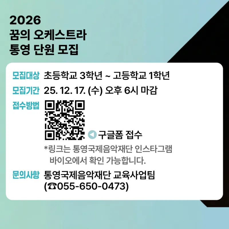 #악기무상지원 #파트별전문강사 #통영국제음악당 #꿈의오케스트라통영 #통영문화 #통영교육 #청소년오케스트라 #청소년문화활동 #통영청소년 #문화예술교육