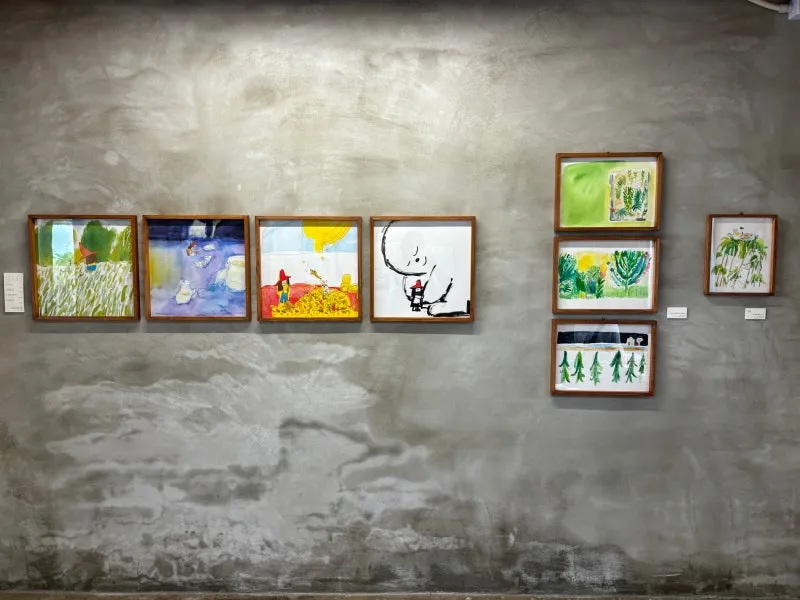 1전시실에는 작가의 대표작 「나의 수수바」 시리즈와 「두 발을 담그고」, 「깜깜하지 않은 밤에」 등에 담긴 작가의 원화가 담겨있습니다.