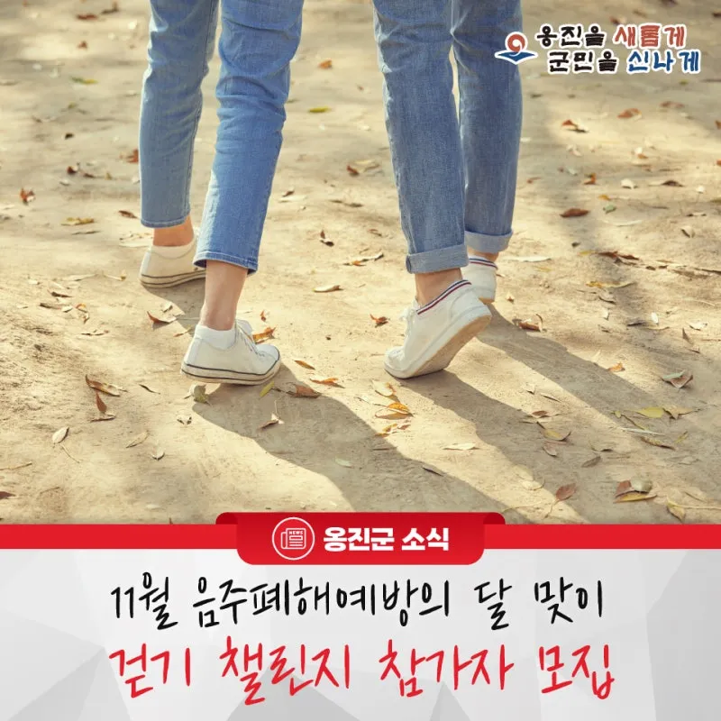 옹진군, 11월 음주폐해예방의 달 맞이 걷기 챌린지 참가자 모집