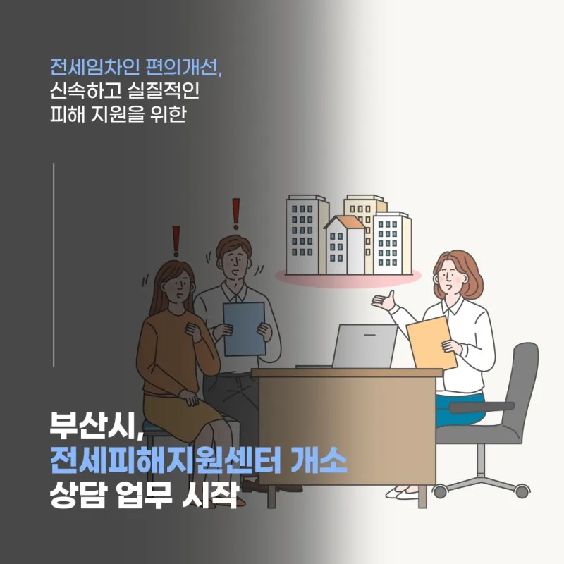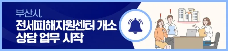 최근 전세 사기가 심각한 사회적 문제로 대두되면서 전세 사기로 어려움을 겪고 있는 전세 피해자 보호의 필요성이 제기되어 왔는데요~ 이에 부산시는 행정력을 확대하고 피해 임차인 편의 개선 등을 위해 수도권 외 지역 최초로 ‘전세피해지원센터’를 설치해 적극 대응할 방침입니다.