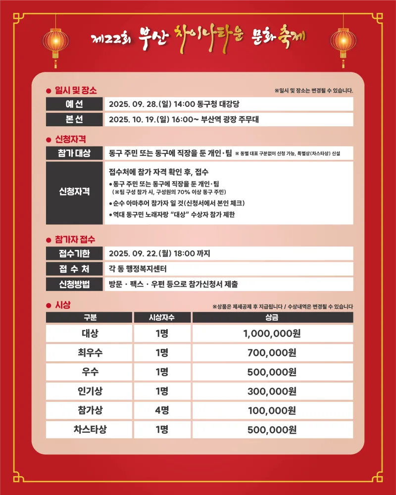 ✅ 예선 : 2025. 9. 28.(일) 14:00 | 동구청 대강당