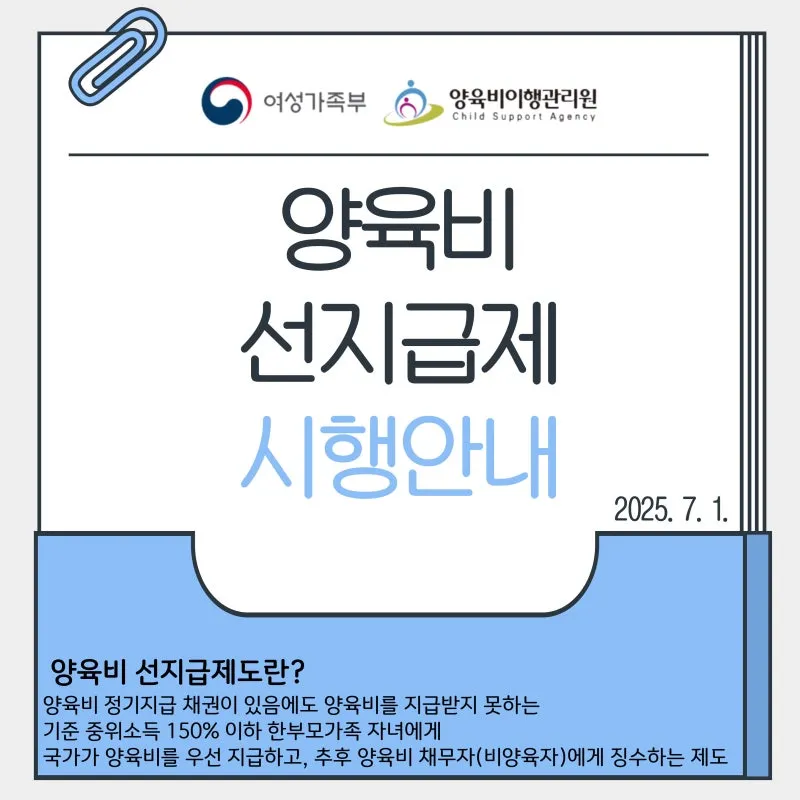 2025년 7월 1일부터 양육비 선지급제가 시행됩니다! ✨