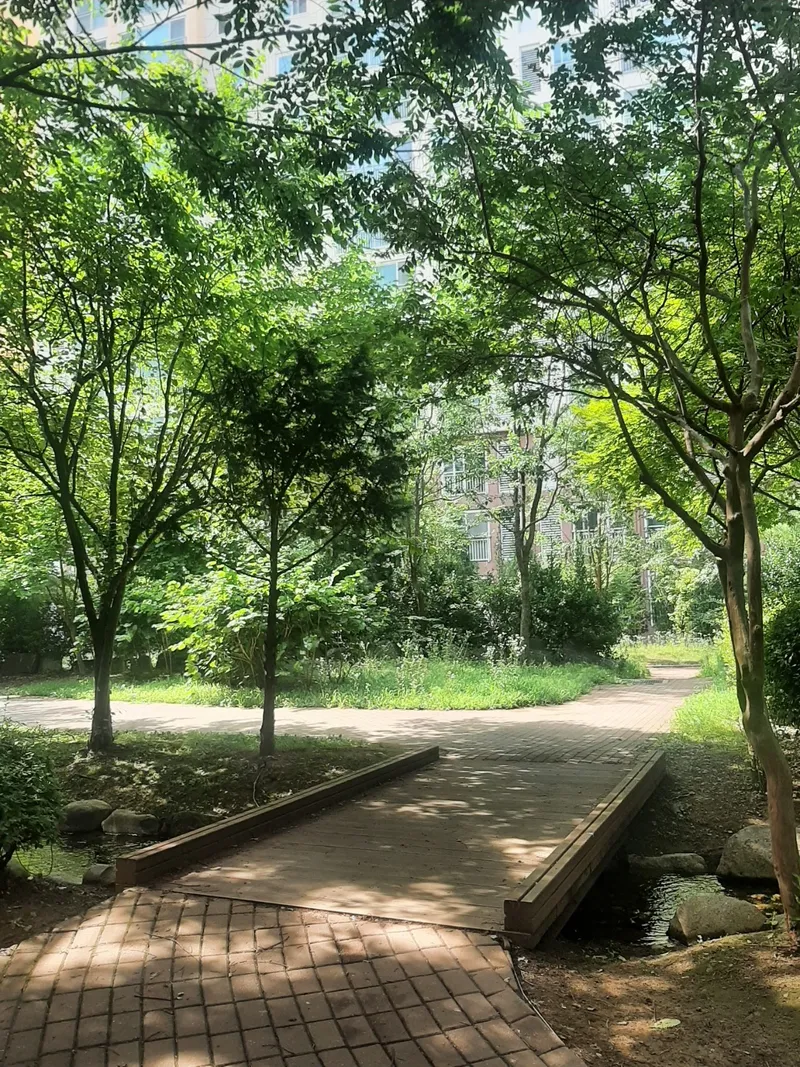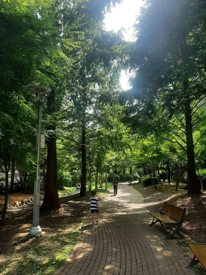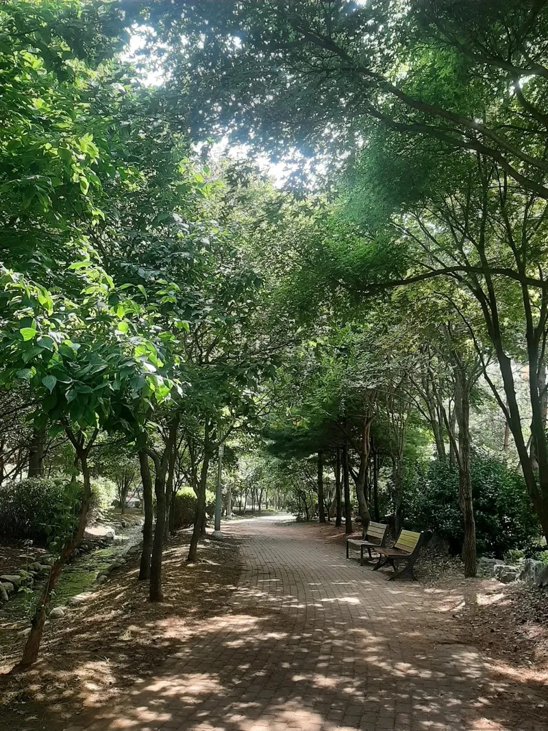 여름은 낮에는 햇빛이 눈부시고, 가만히 있어도 땀이 납니다. 그럴 때마다 이곳으로 산책하러 와 보세요. 나무가 우거져 있어 뜨거운 햇빛을 가려주고 바람 솔솔 여름 바람이 불어옵니다. 여름 바람이 시원합니다.