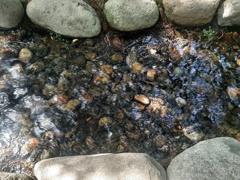 튼튼해 보이는 나무다리 아래로 보이는 수경시설을 천천히 들여다봅니다. 깨끗한 물과 돌멩이가 예쁘게 느껴집니다.