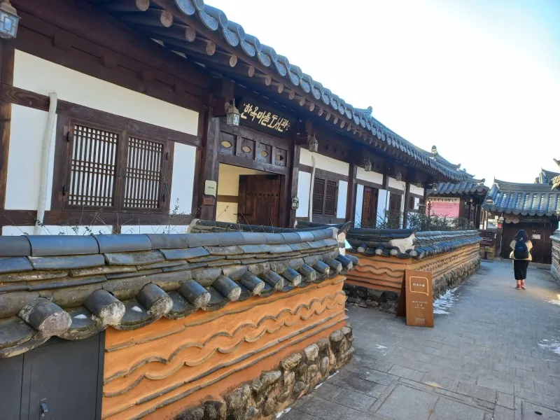 전주한옥마을의 시작을 알리는 한옥마을 표지석을 따라 걸어가다 보면 첫 번째 골목에서 한옥마을 도서관을 만날 수 있습니다. 한옥의 편안함과 함께 지식의 세계로 여행할 수 있는 여행자들과 시민들을 위한 공간입니다.