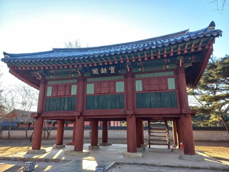 전주사고 내부로 들어갈 수 있는 나무 계단이 있습니다. 그냥 지나치기 쉬운 건물인데 알면 알수록 역사적 가치가 높은 건물입니다. ‘역사를 알면 미래가 보인다.’의 역사를 책임져 준 <조선왕조실록> 원본을 지켜준 건물이니까요. 이제 조선왕조실록에 대해 잠시 알아볼까요?