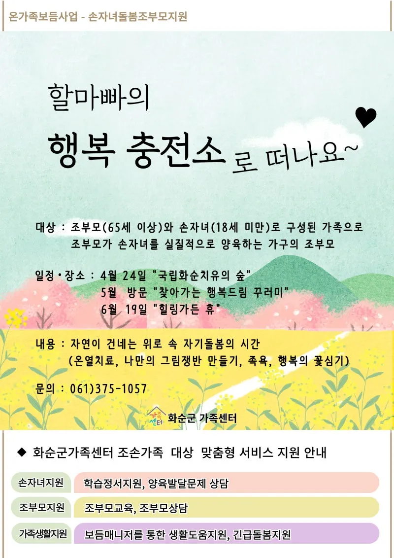 화순군가족센터 손자녀돌봄조부모지원 프로그램 안내