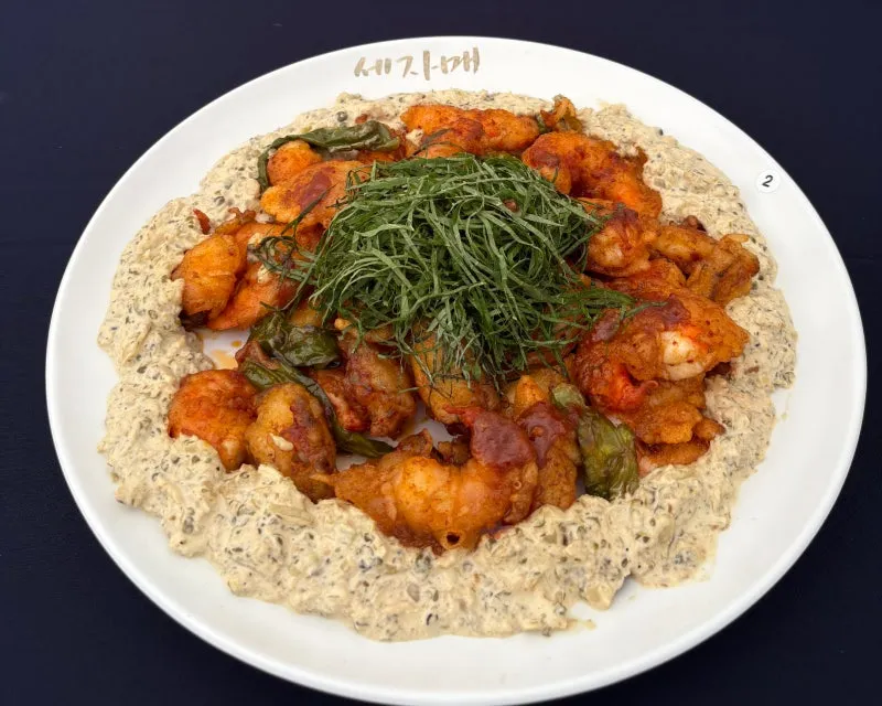 들깨와 새우의 조합에 양식적인 소스 터치로