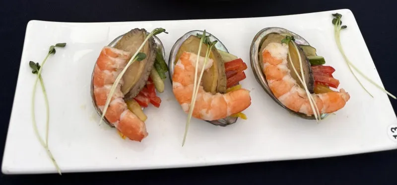 3. 전복껍질에 담고, 땅콩겨자소스와