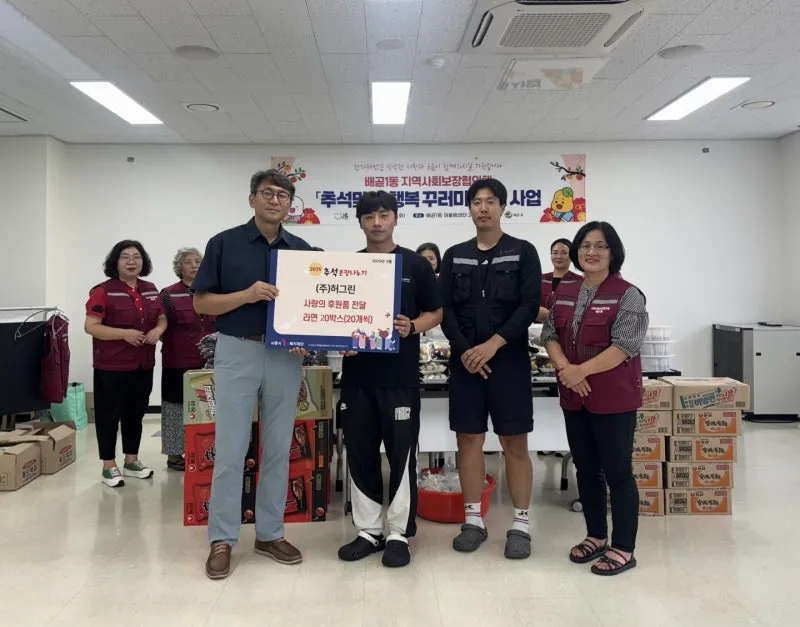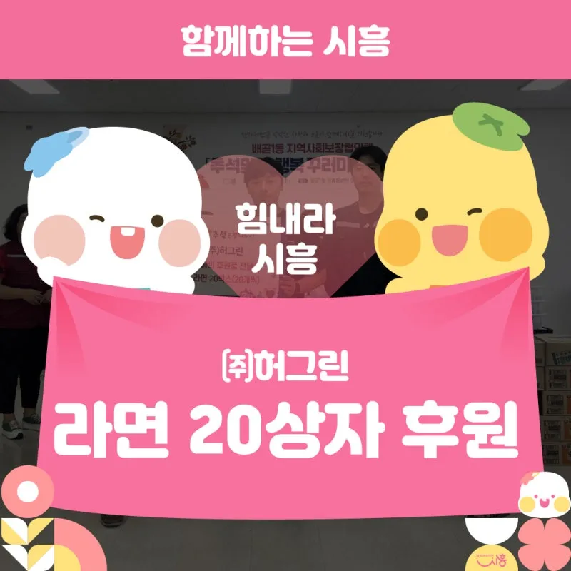시흥시에 있는 도시락, 샌드위치 등 식품제조 기업인 (주)허그린은 지난 9월 16일 배곧1동 행정복지센터에 추석 명절을 맞아 50만 원 상당의 라면 20상자를 후원하며 지역사회에 따뜻한 마음을 전했습니다.