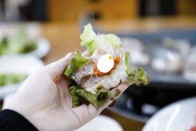 개인적으로 제가 제일 좋아하는 방법은 싱싱한 쌈 채소와 곁들이는 거예요. 고기의 육즙과 채소의 채소즙이 어우러지면 맛이 더 끝내줍니다.