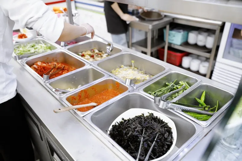 참고로 추가 반찬은 셀프로 진행됩니다. 셀프코너는 위생적으로 운영되어 있고 마늘, 참기름, 고추장, 양파절임, 쌈무 등 고기와 어울리는 다양한 반찬들이 준비되어 있습니다.