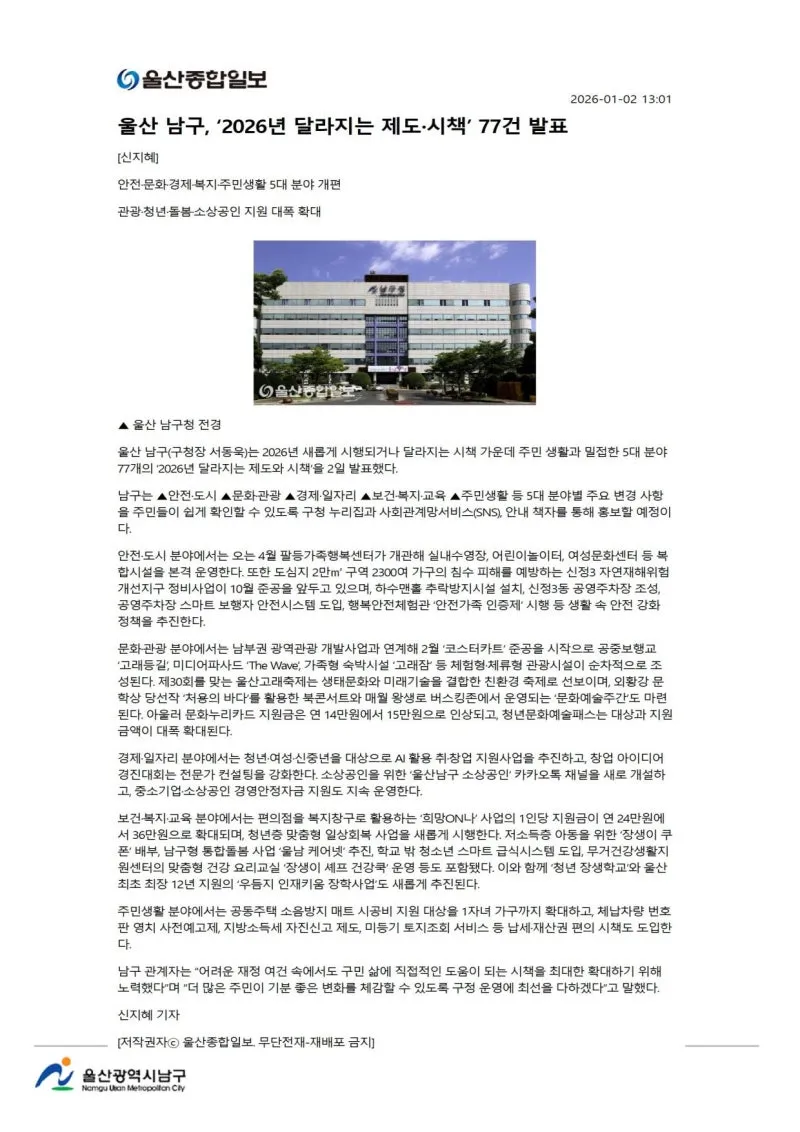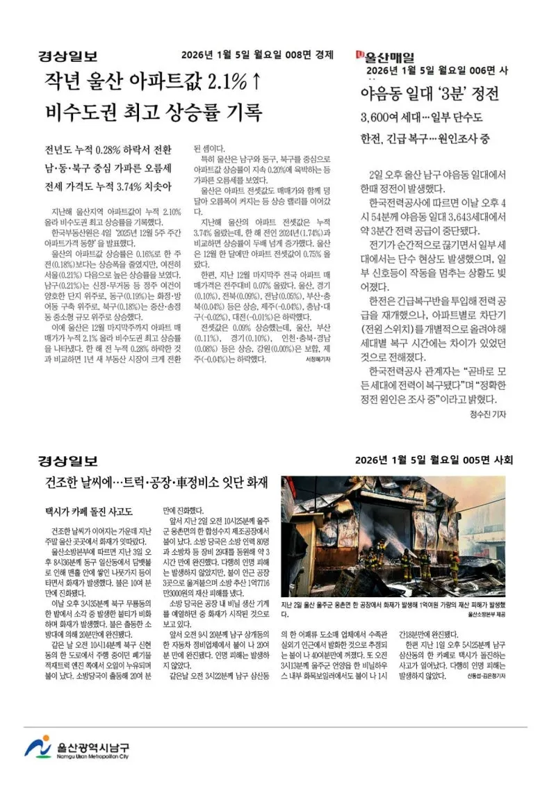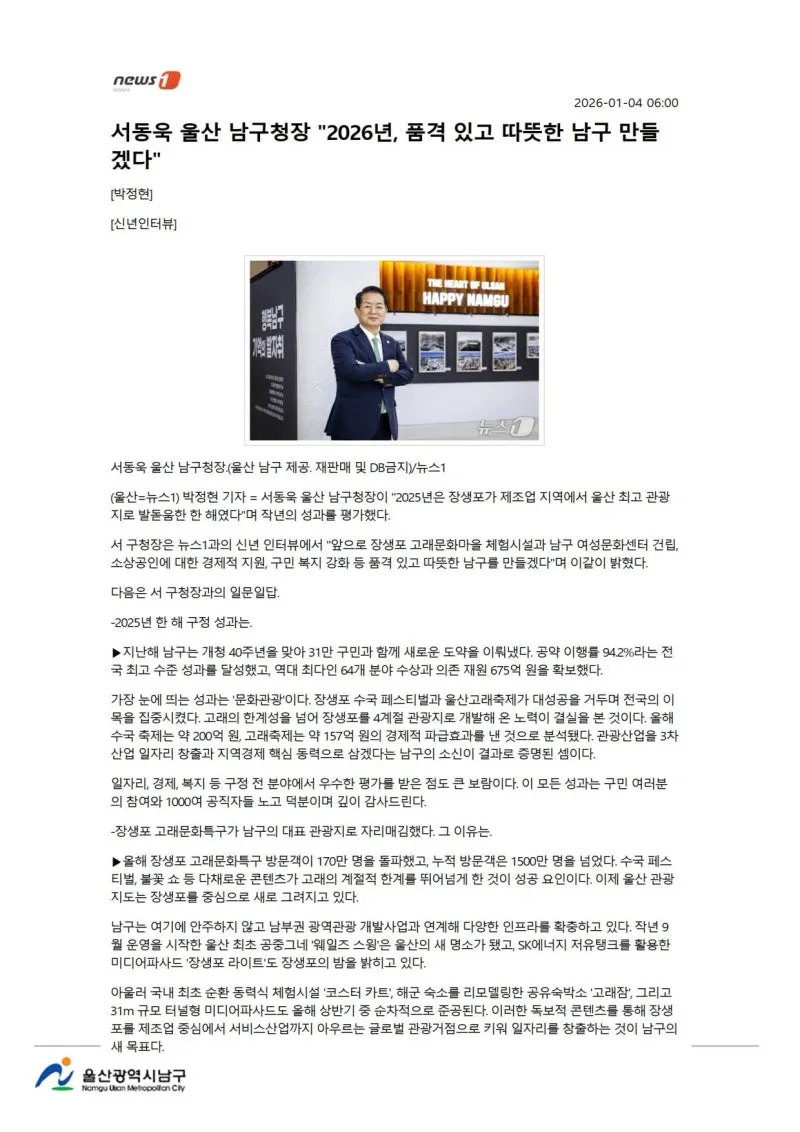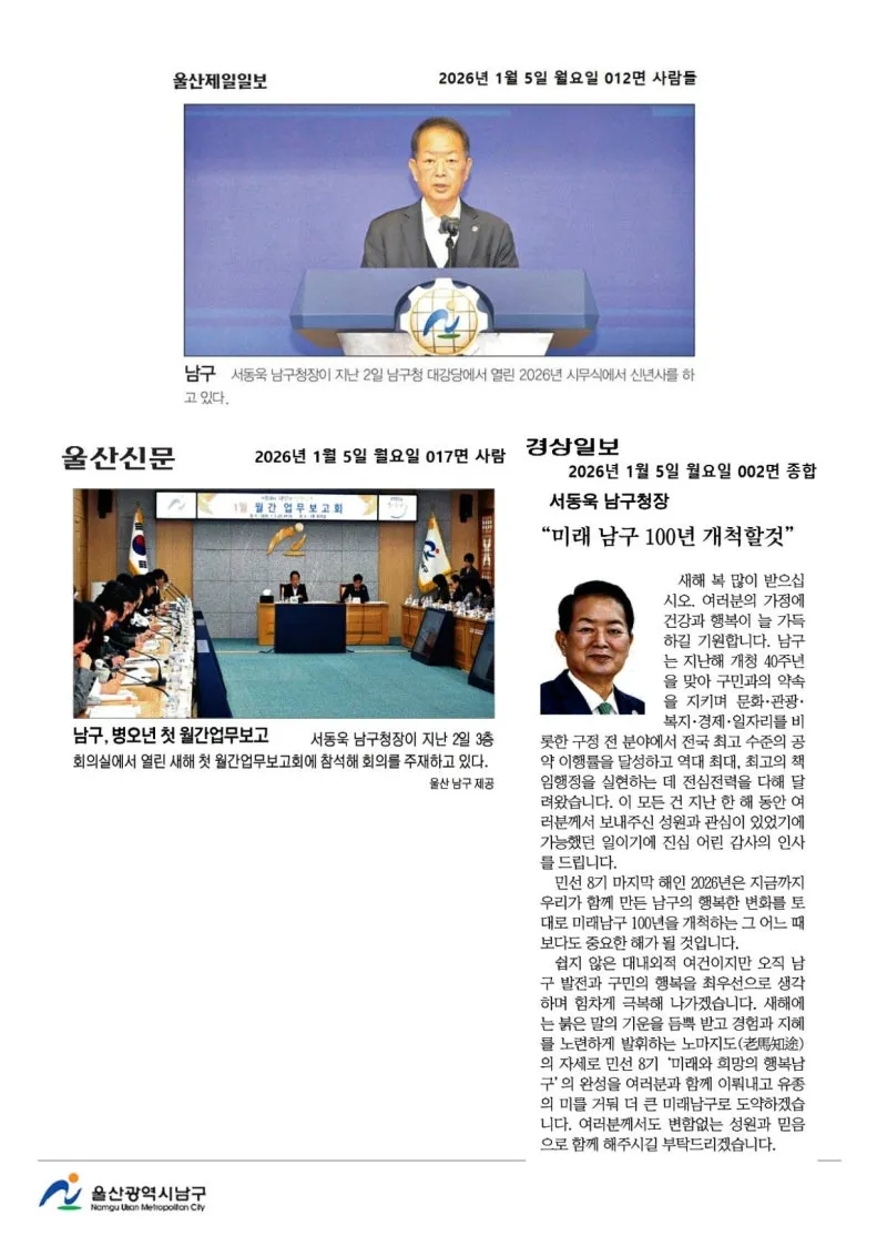 {"title":"[행복남구 오늘의신문] 올해도 힘차게 나아가는 행복남구🌅 (1월 5일 월요일)","source":"https://blog.naver.com/ulsan-namgu/224134597319","blogName":"울산광역시..","domainIdOrBlogId":"ulsan-namgu","nicknameOrBlogId":"울산광역시남구청","logNo":224134597319,"smartEditorVersion":4,"blogDisplay":false,"meDisplay":true,"outsideDisplay":false,"lineDisplay":true,"cafeDisplay":false}