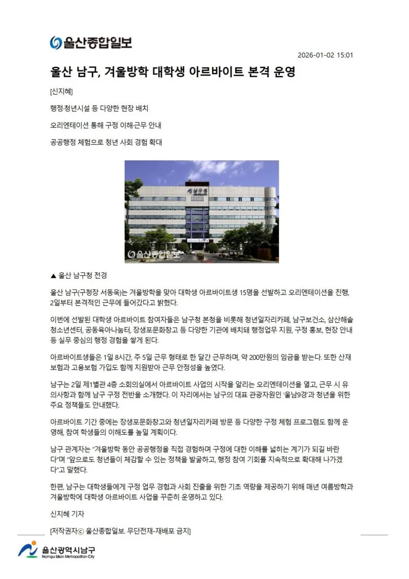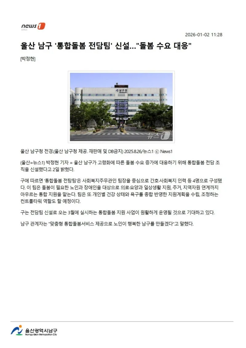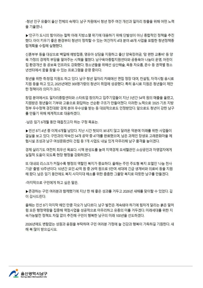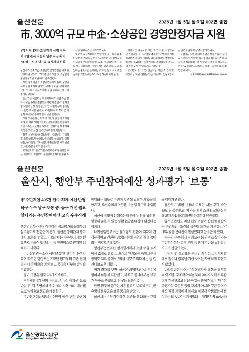 {"title":"[행복남구 오늘의신문] 올해도 힘차게 나아가는 행복남구🌅 (1월 5일 월요일)","source":"https://blog.naver.com/ulsan-namgu/224134597319","blogName":"울산광역시..","domainIdOrBlogId":"ulsan-namgu","nicknameOrBlogId":"울산광역시남구청","logNo":224134597319,"smartEditorVersion":4,"blogDisplay":false,"meDisplay":true,"outsideDisplay":false,"lineDisplay":true,"cafeDisplay":false}