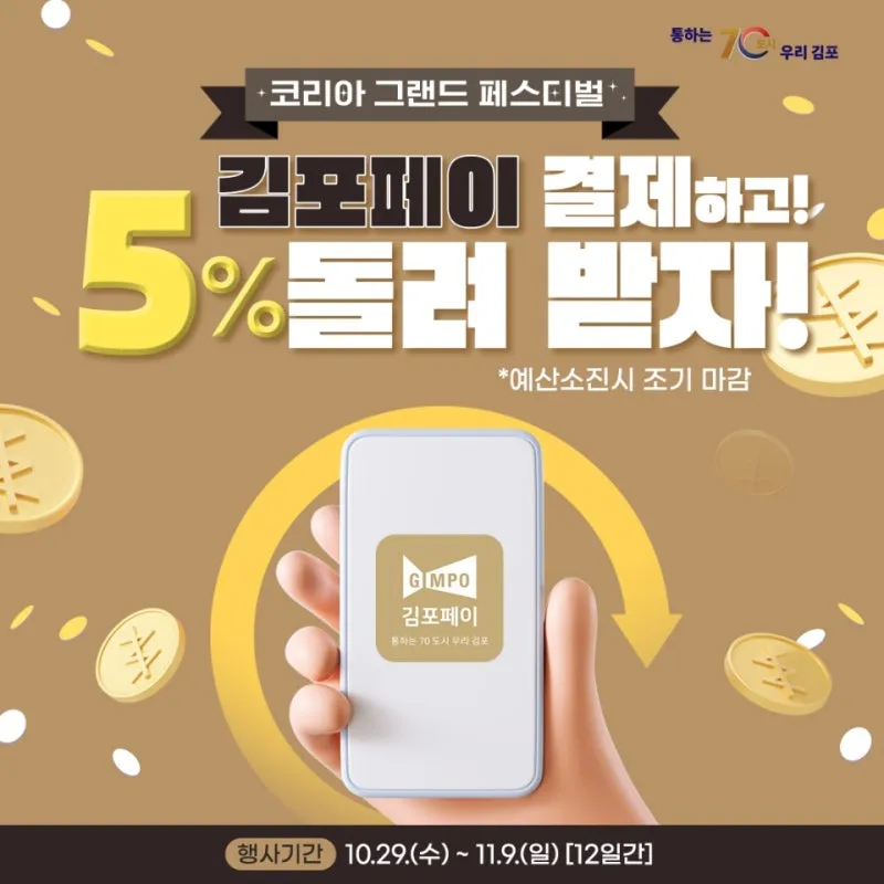 행사 기간 동안 김포페이로 결제하면 자동 5% 캐시백!