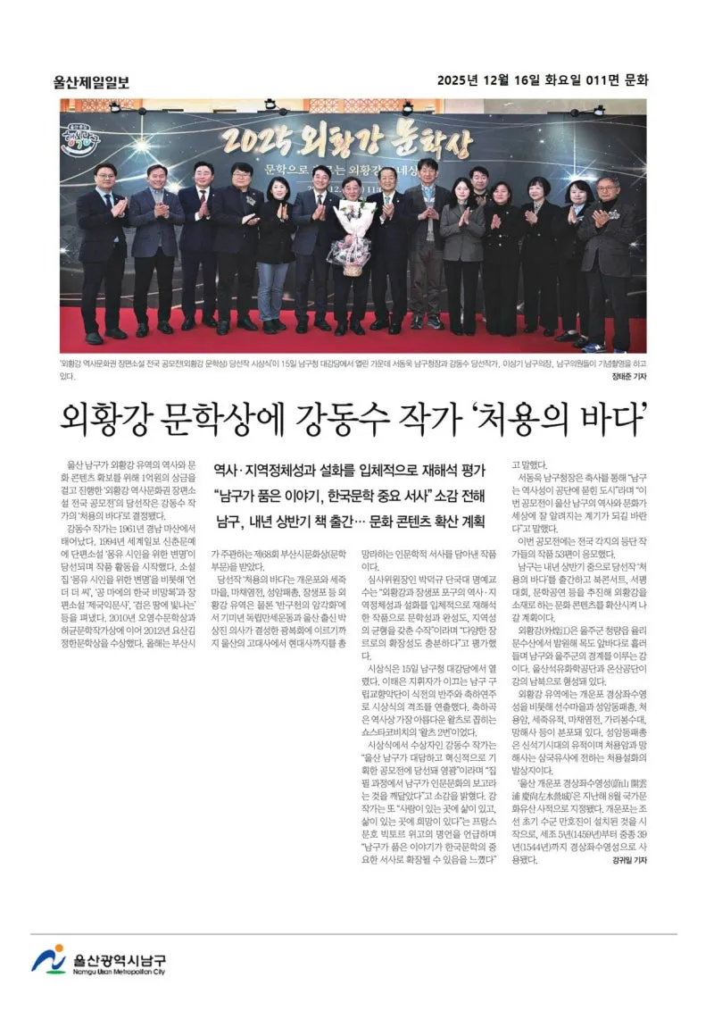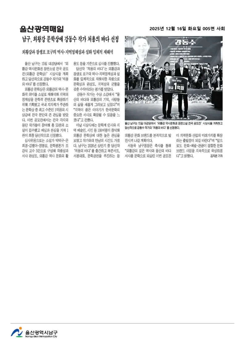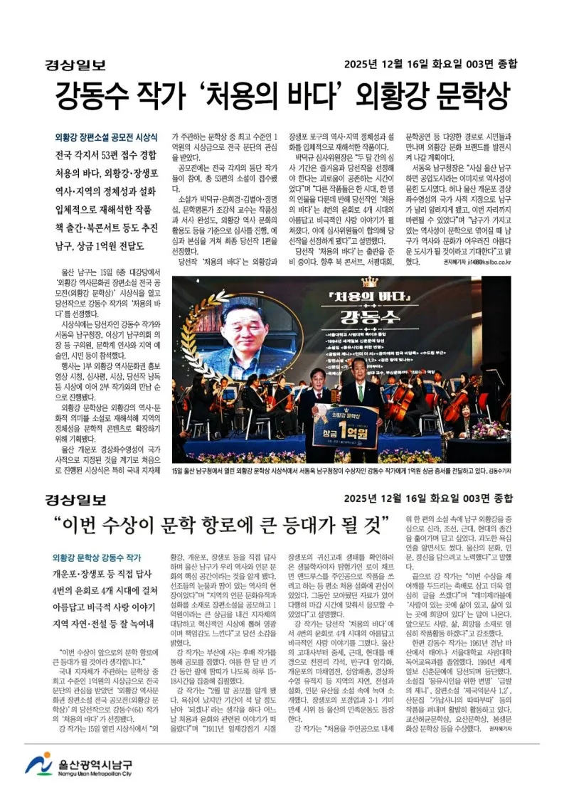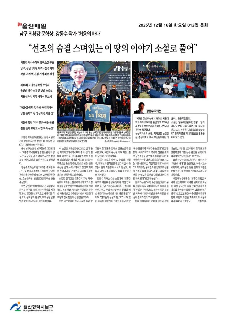 {"title":"[행복남구 오늘의신문] ????외황강 문학상 시상식 ! ????선조의 숨결 스며있는 이 땅의 이야기 소설로 풀어! (12월 16일 화요일)","source":"https://blog.naver.com/ulsan-namgu/224111438835","blogName":"울산광역시..","domainIdOrBlogId":"ulsan-namgu","nicknameOrBlogId":"울산광역시남구청","logNo":224111438835,"smartEditorVersion":4,"blogDisplay":false,"outsideDisplay":false,"meDisplay":true,"cafeDisplay":false,"lineDisplay":true}