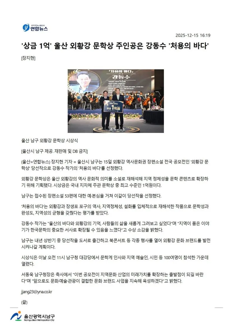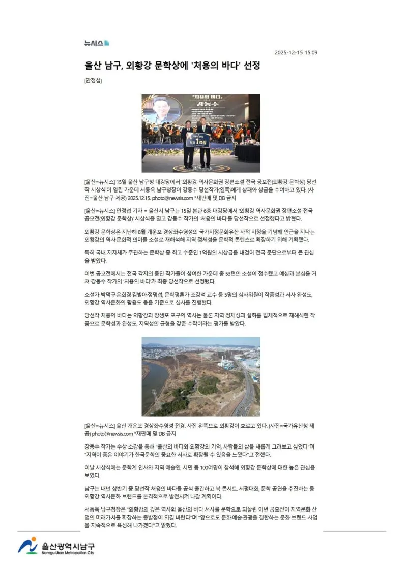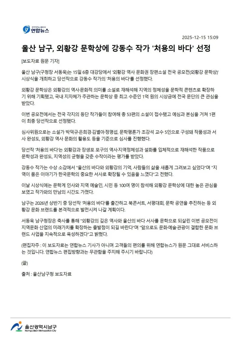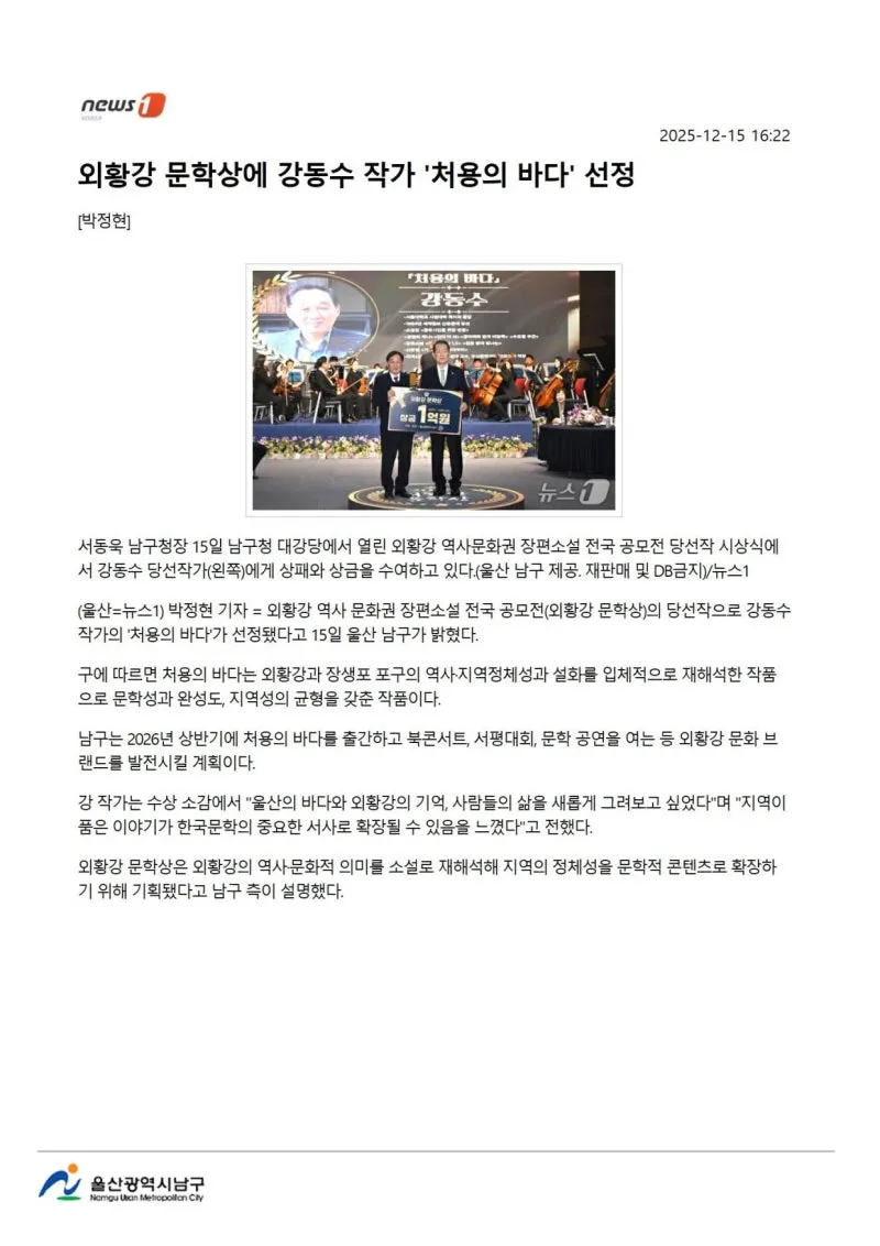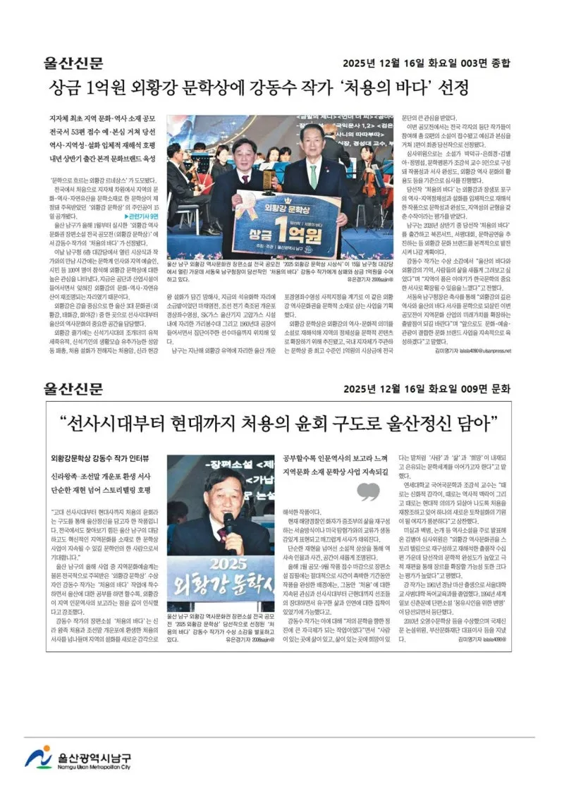 {"title":"[행복남구 오늘의신문] ????외황강 문학상 시상식 ! ????선조의 숨결 스며있는 이 땅의 이야기 소설로 풀어! (12월 16일 화요일)","source":"https://blog.naver.com/ulsan-namgu/224111438835","blogName":"울산광역시..","domainIdOrBlogId":"ulsan-namgu","nicknameOrBlogId":"울산광역시남구청","logNo":224111438835,"smartEditorVersion":4,"blogDisplay":false,"outsideDisplay":false,"meDisplay":true,"cafeDisplay":false,"lineDisplay":true}