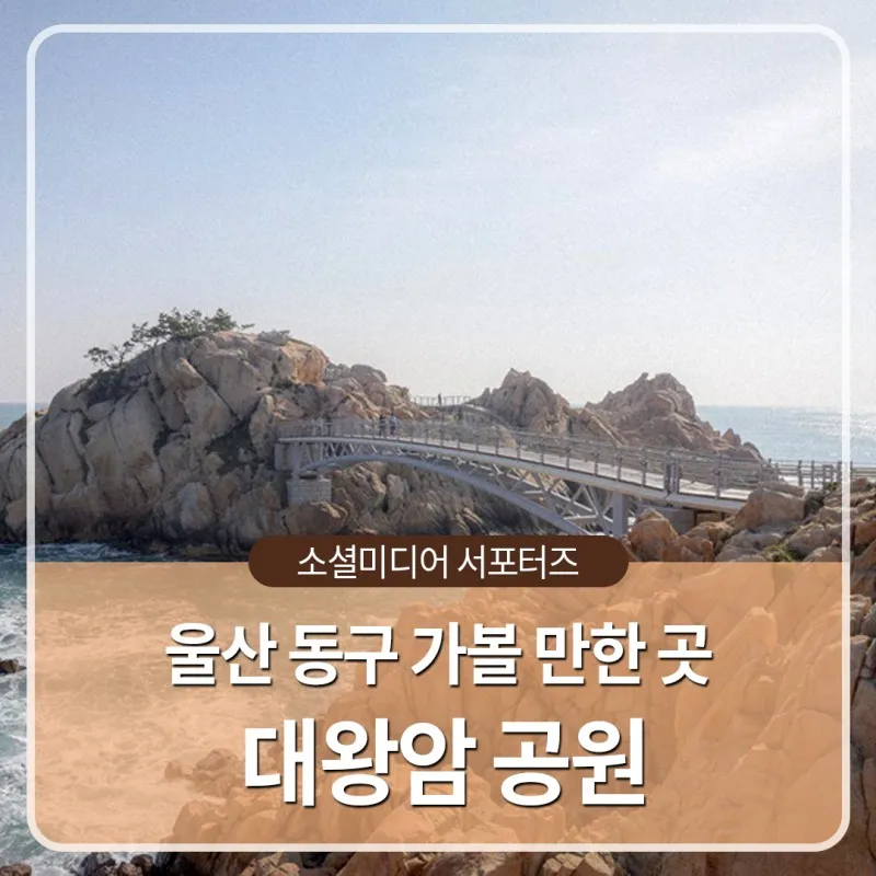 서포터즈 활동으로 발대식에 다소 큰 충격을 받았지만, 울산에서도 별도의 섬처럼 분류가 되는 동구의 상황상 다른 구, 군청에 비해서 여러 가지 부분에 있어서 아쉬움이 크다. 하지만 울산 동구가 기지고 있는 관광자원들은 전국적으로도 경쟁력을 갖추고 있는 곳들이 많다. 다만 잘 알려지지 않았거나 불편한 교통편으로 인해 직접적으로 방문이 어려운 것 또한 사실이다. 서포터즈의 입장에서 소개했으면 좋겠는 곳이 있어서 첫 글로 소개해 보려고 한다. 바로 대왕암 공원인데, 최근 출렁다리가 문을 열면서 전국적으로 크게 주목을 받았던 울산 동구를 대표하는 관광지이기도 하다.