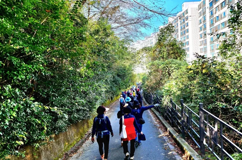 럭키 아파트 뒷길에 잘 포장된 산책길이 시작됩니다.