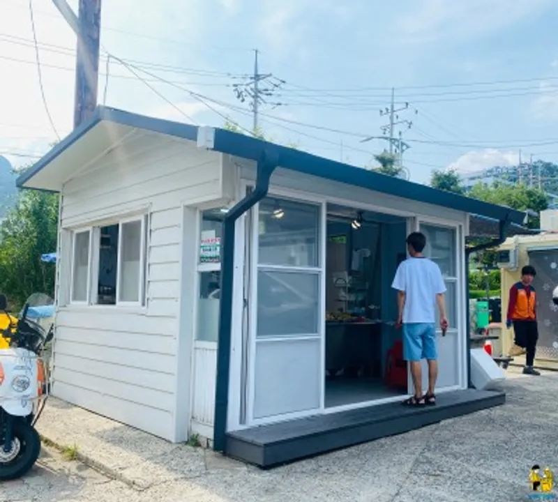 남해읍 화전도서관과 남해군청 중간쯤에 위치한 식자재마트 앞에 가시면 작은 컨테이너를 볼 수 있습니다.