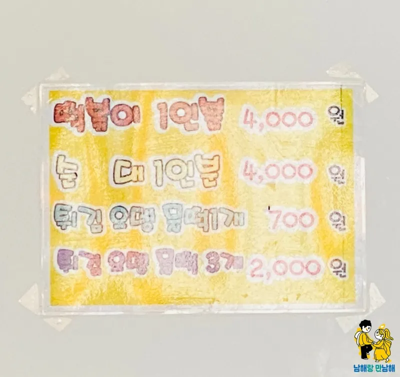 남해도매유통 앞 간판없는 분식집