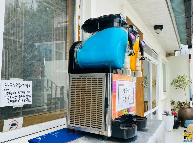 계단을 올라가면 슬러시가 더운 손님들을 먼저 맞아주네요.