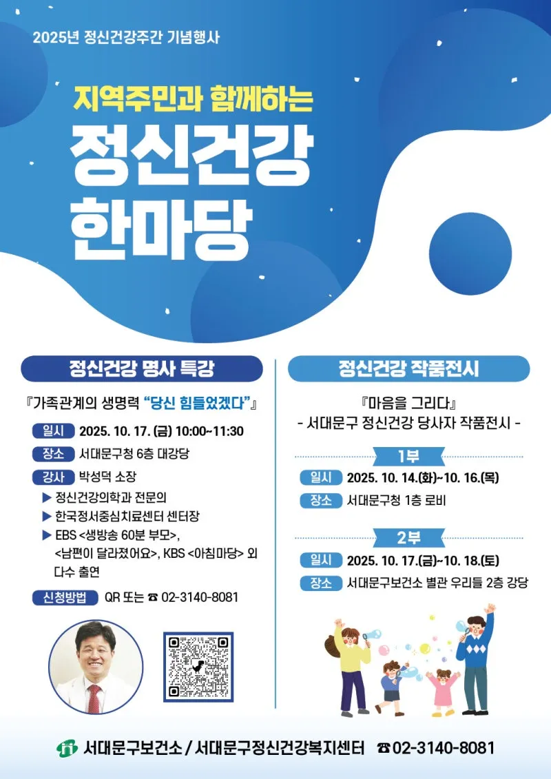 #서대문구 #서대문소식 #정신건강주간 #정신건강한마당 #정신건강특강 #박성덕소장 #마음을그리다 #정신건강작품전시 #서대문구보건소 #서대문정신건강복지센터 #10월행사 #서대문축제