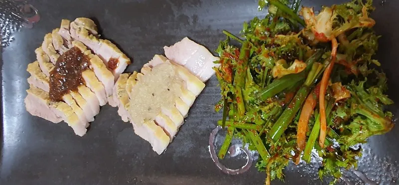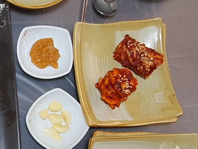 수육은 보쌈김치가 좌우한다는 말이 있듯이 비쥬얼만으로도 매콤 칼칼함이 느껴지는 고춧가루를 아끼지 않고 듬뿍 양념된 모습이 보기만 해도 개운해집니다. 정갈하고 깔끔하게 도자기 접시에 담긴 반찬들에 정성스러움까지 느껴져 이 가격이 아까울 정도로 만족스럽습니다.