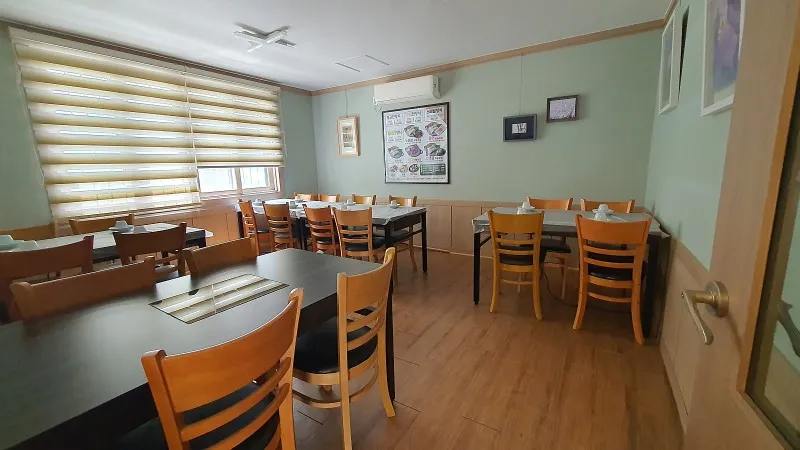 다시 내부로 들어가보면, 식탁과 의자들이 깨끗하고 넉넉하게 정돈되어있어 단체 식사도 가능하다고 합니다.