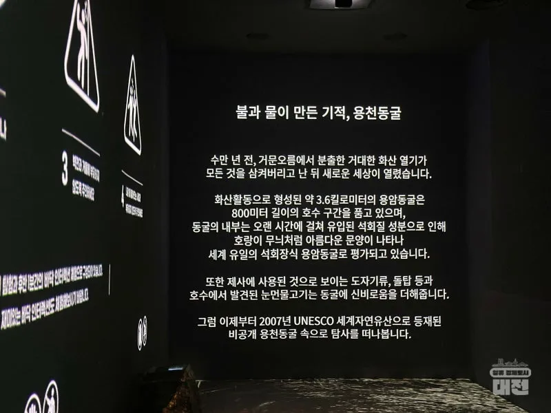 그리고 용천동굴에 대한 미디어아트 전시실까지 있어서 더욱 생동감 있게 즐길 수 있습니다.