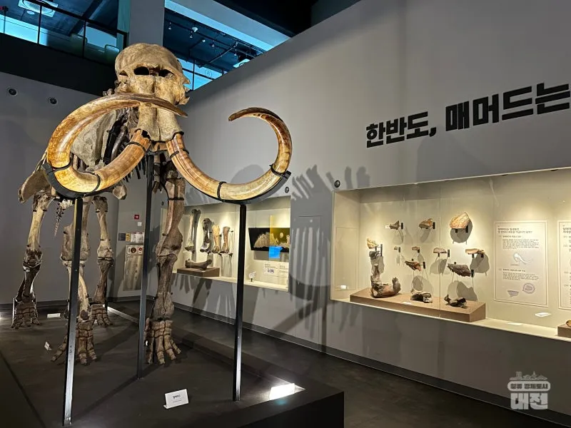 한반도에서도 매머드의 화석이 발견되었다는 점도 아셨나요? 실제 화석을 전시하고 있고 체험할 수 있는 부스도 있습니다.