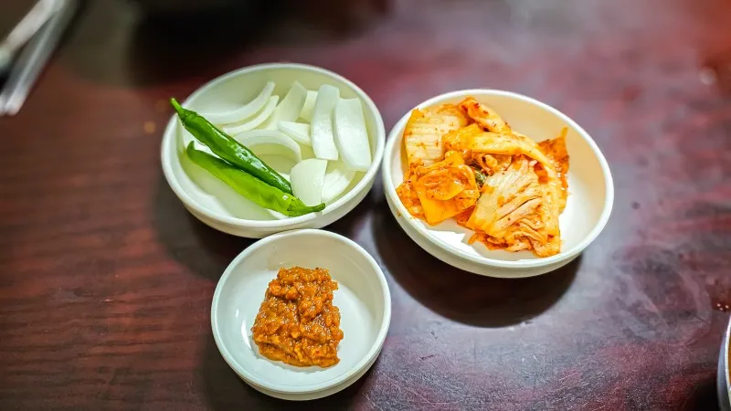 양파와 청양고추 그리고 배추김치가 전부입니다.