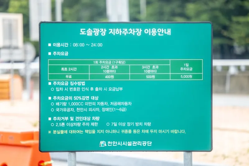 ✈️ [천안시민리포터] 시민들의 광장! '도솔광장' 무료주차 시간이 2시간으로 확대되었습니다.