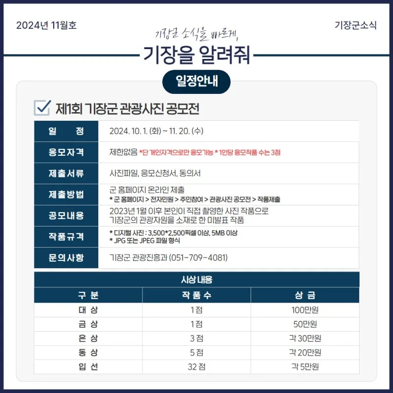 제1회 기장군 관광사진 공모전! 많은 관심과 참여 부탁드립니다! 🌟