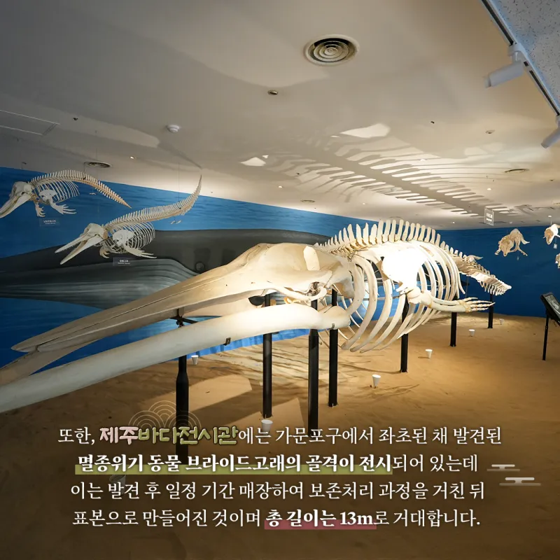 멸종위기 동물 브라이드고래의 골격이 전시되어 있는데