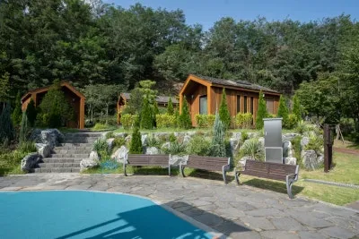 독서캠핑장 내에는 원형 캠핑장 4동과 편백나무 캠핑장 4동, 나무 전망대, 어린이 놀이터, 샤워실, 화장실, 분리수거장, 야영데크, 냉·온풍기 등 캠핑장 이용에 불편이 없도록 편의시설도 고루 갖춰져 있답니다.