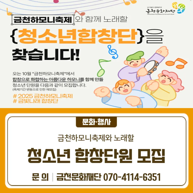 금천하모니축제와 노래할 <청소년 합창단원> 모집