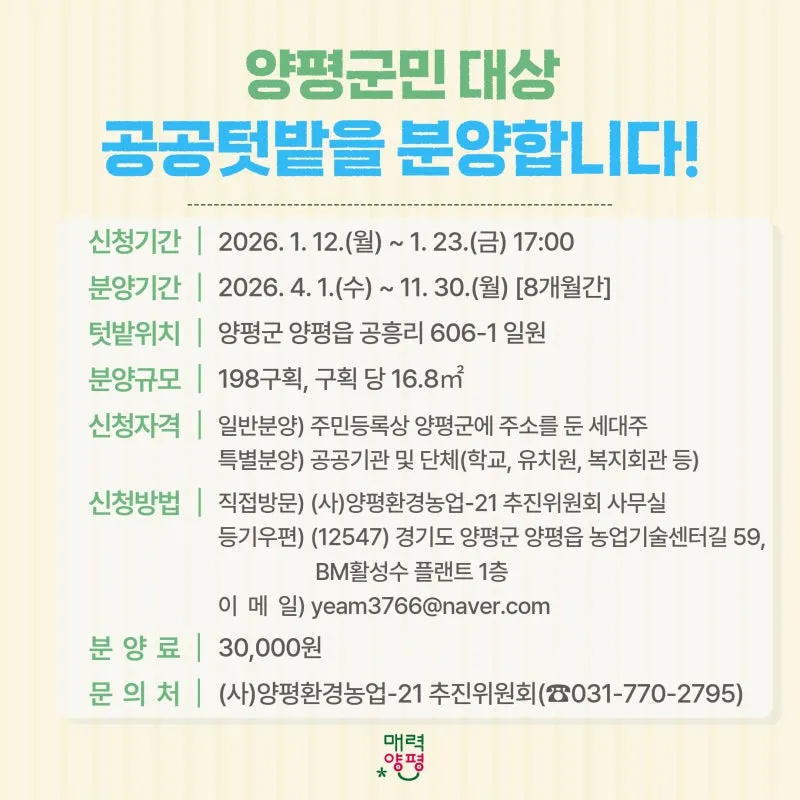 (사)양평환경농업-21 추진위원회(☏031-770-2795)