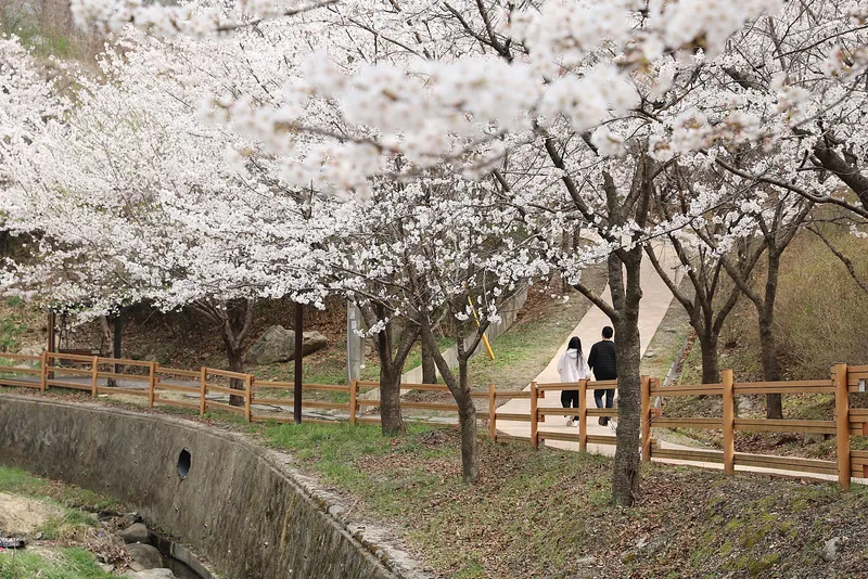한창 벚꽃이 만발해있어 봄에 가기 딱 좋은 대덕구 아름다운 명소 '송촌체육공원'으로 산책 삼아 봄나들이 나가보시면 어떨까요. 아름다운 벚꽃이 만발하는 따뜻한 봄날 #예쁜 사진과 추억을 남겨보시기를 바랍니다.
