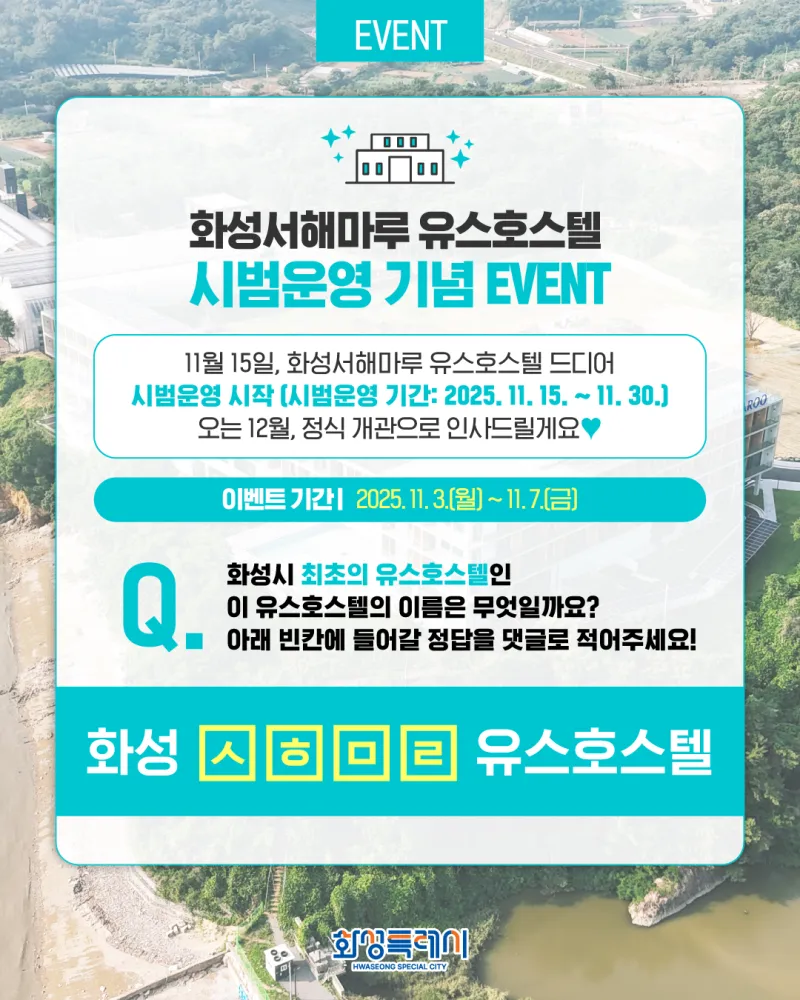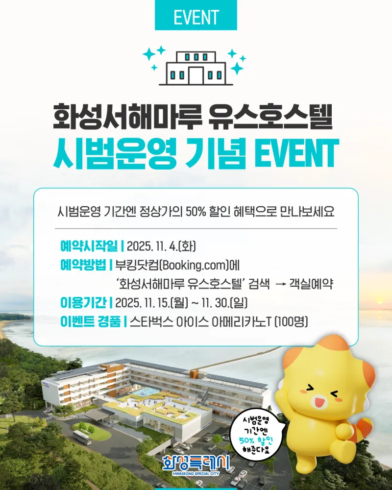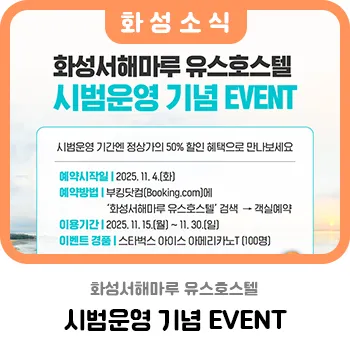 📅 화성서해마루 유스호스텔 시범운영 기념 이벤트 기간