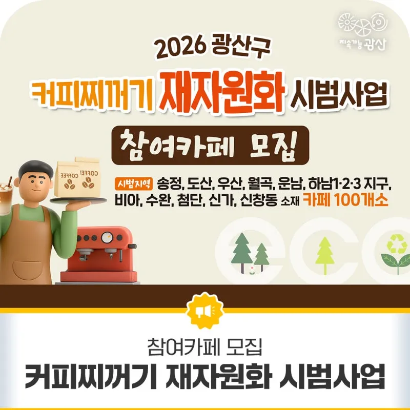 커피찌꺼기 재자원화 시범사업 참여카페 모집