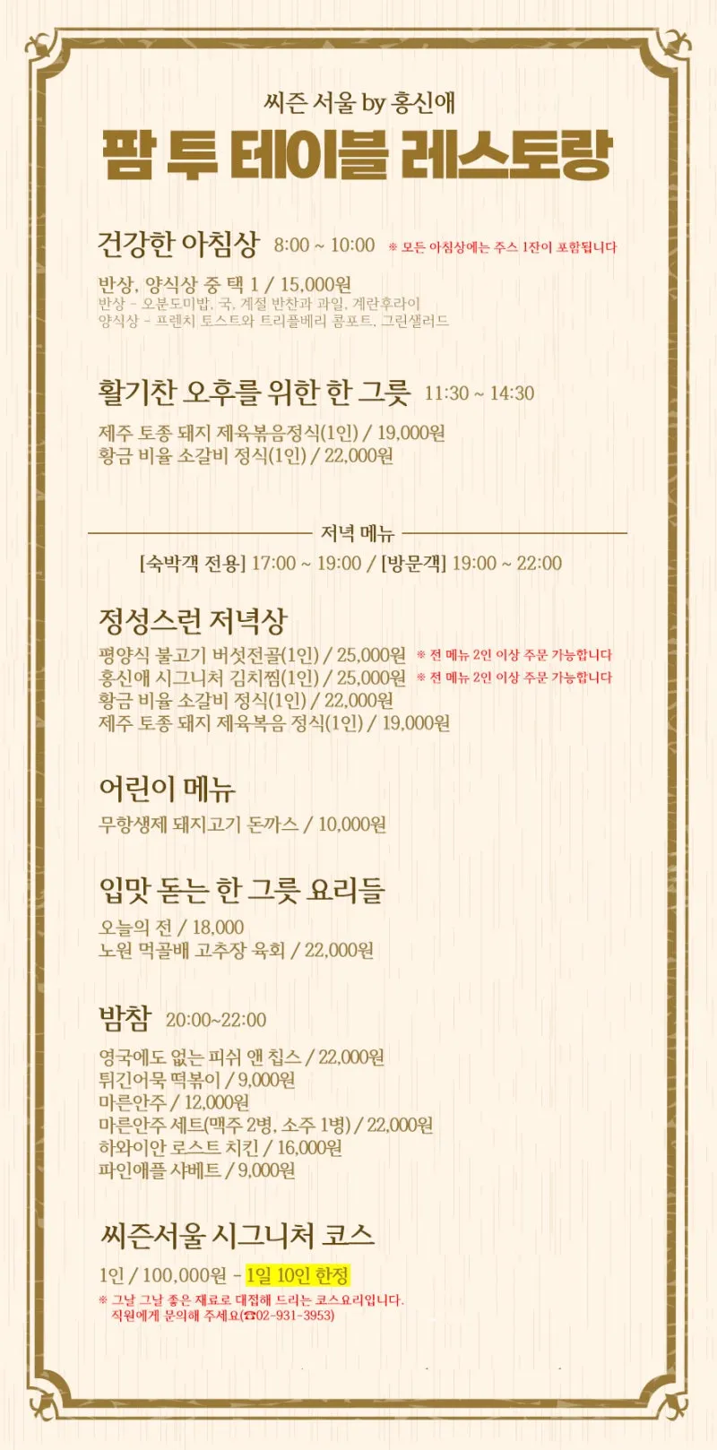 08:00~10:00 ※ 라스트 오더 - 09:30 |
