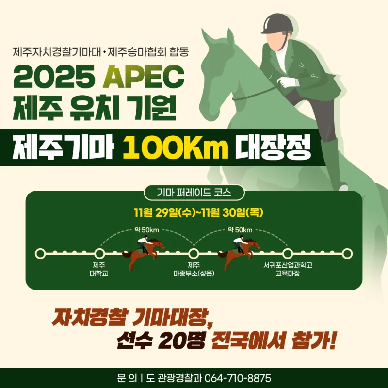 {"title":"2025 APEC 제주 유치 기원 제주기마 100㎞ 대장정","source":"https://blog.naver.com/happyjejudo/223277018786","blogName":"빛나는제주","blogId":"happyjejudo","domainIdOrBlogId":"happyjejudo","logNo":223277018786,"smartEditorVersion":4,"lineDisplay":true,"outsideDisplay":true,"cafeDisplay":true,"blogDisplay":true,"meDisplay":true}