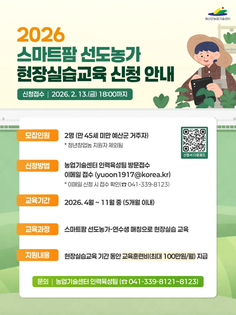 📢2026 스마트팜 선도농가 현장실습교육 신청 안내