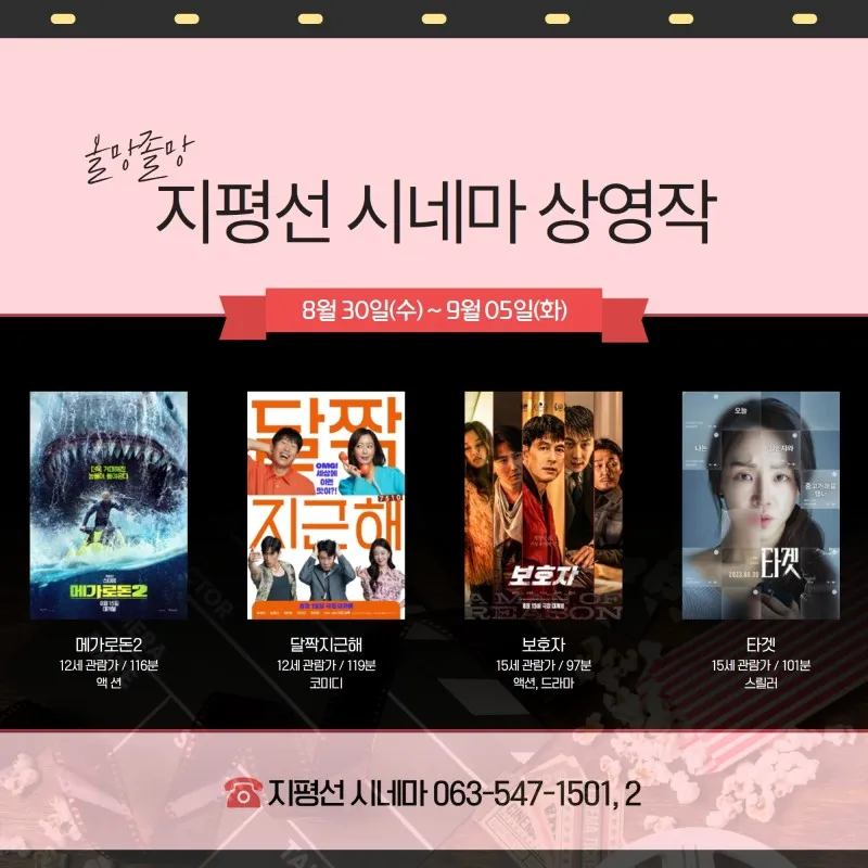 #지평선김제, #김제, #영화는지평선시네마, #지평선시네마, #극장, #영화관, #김제극장, #메가로돈2, #달짝지근해, #보호자, #타겟